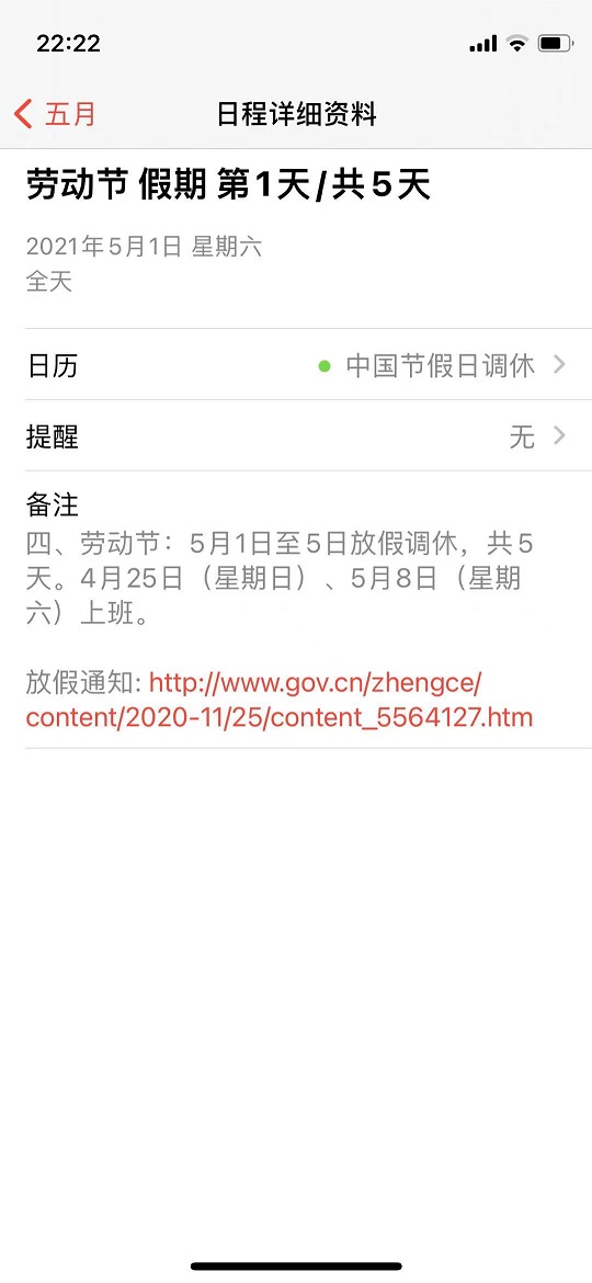 - 日历标题包含放假、补班等关键字,方便脚本开发。例如使用